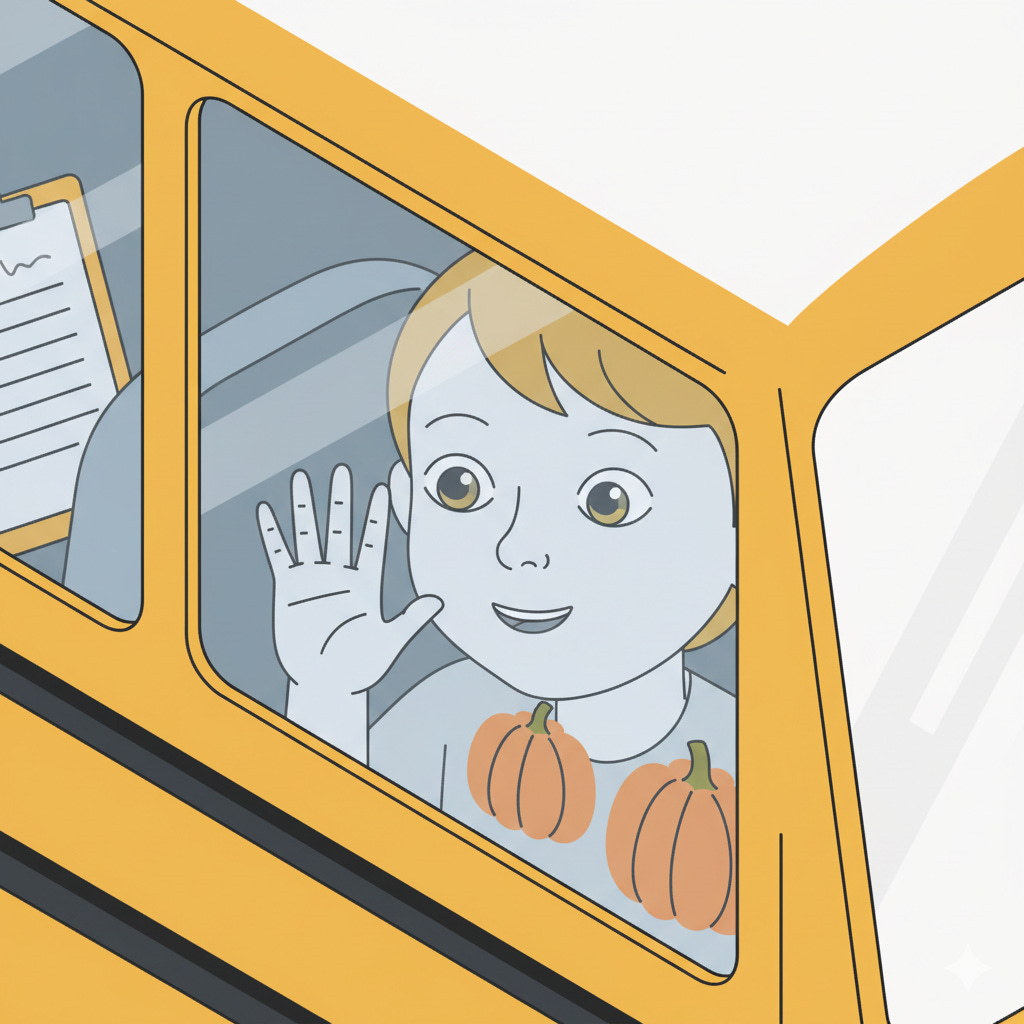 The bus pulled away from the farm, and my daughter pressed her face against the window, waving at the pumpkins we were leaving behind.